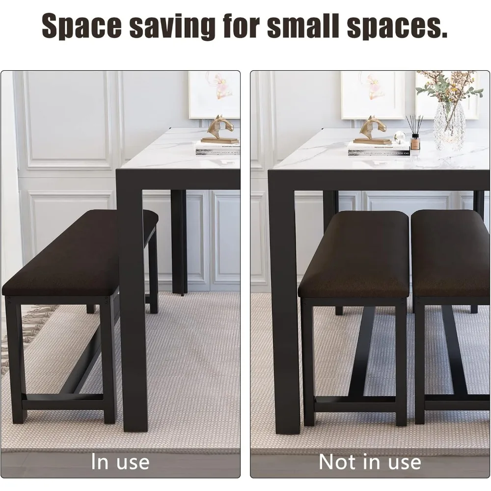 Dining Room Set with 2 Benches, Dining for 4-6, Dinner for 4, Faux Marble Breakfast & PU Lea