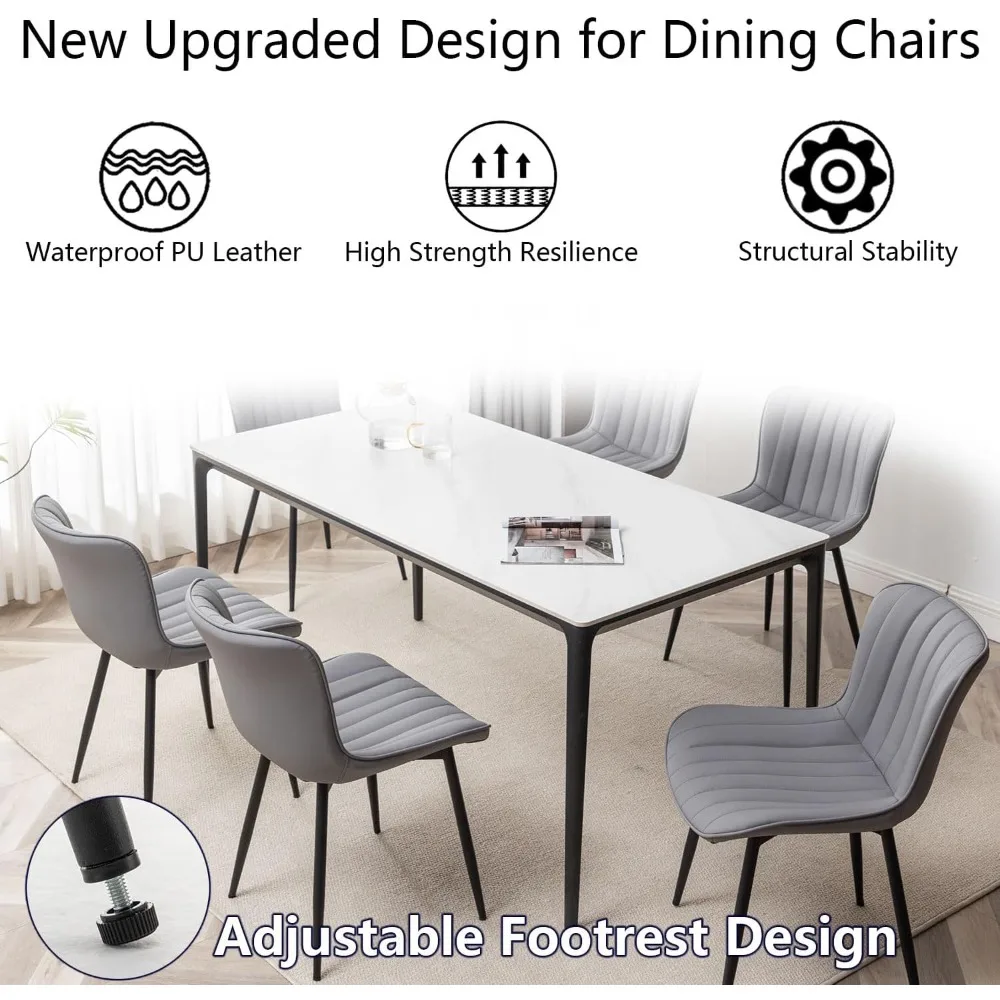 Leather Dining Chairs Set of 6, Upholstered Dining Room Chairs with Metal Legs, Modern Dining Chair for Room, Kitchen (Gr
