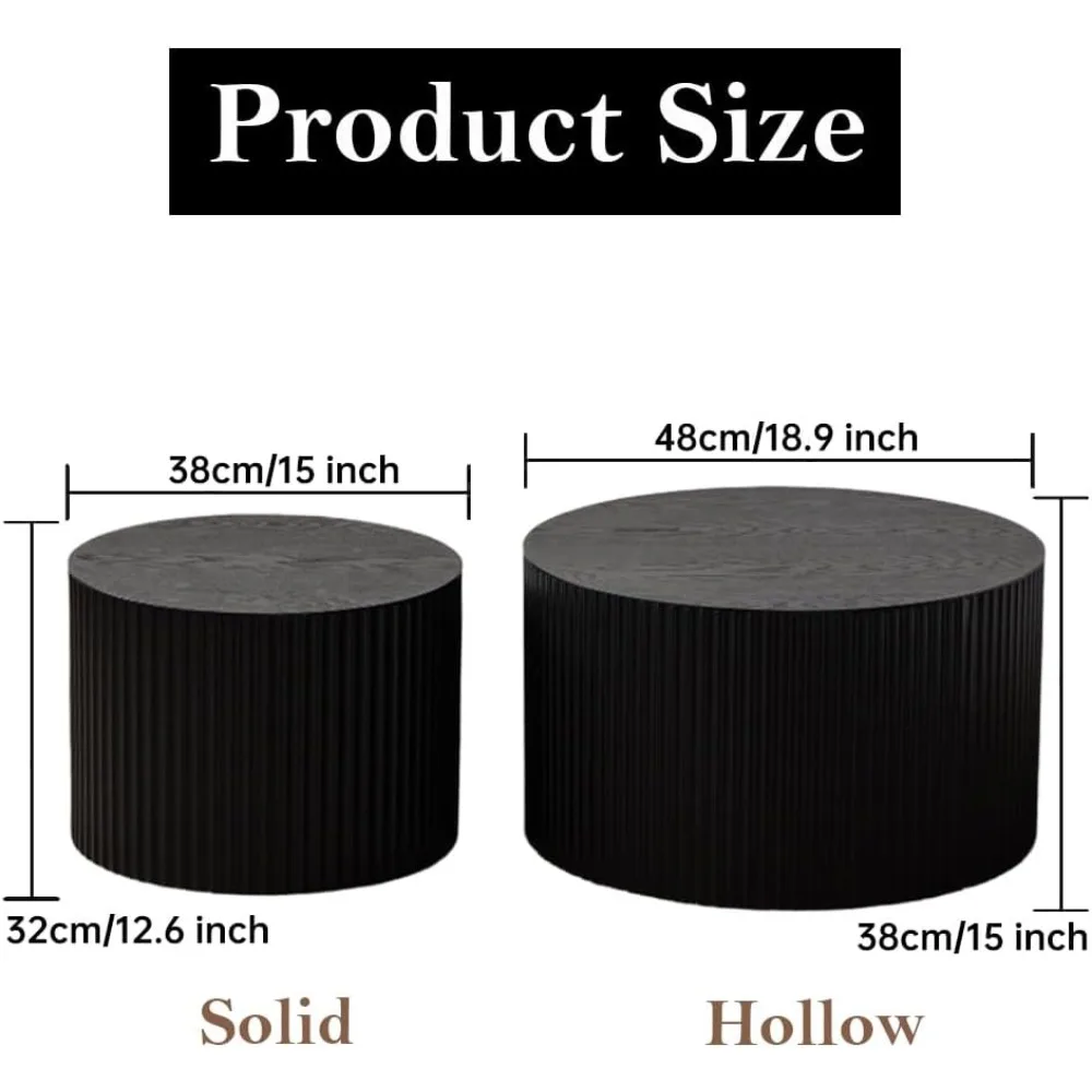 Round Nesting Coffee Table Set of 2 Modern Black Fluted Coffee Table Small Round End Table Side Circular Coffee