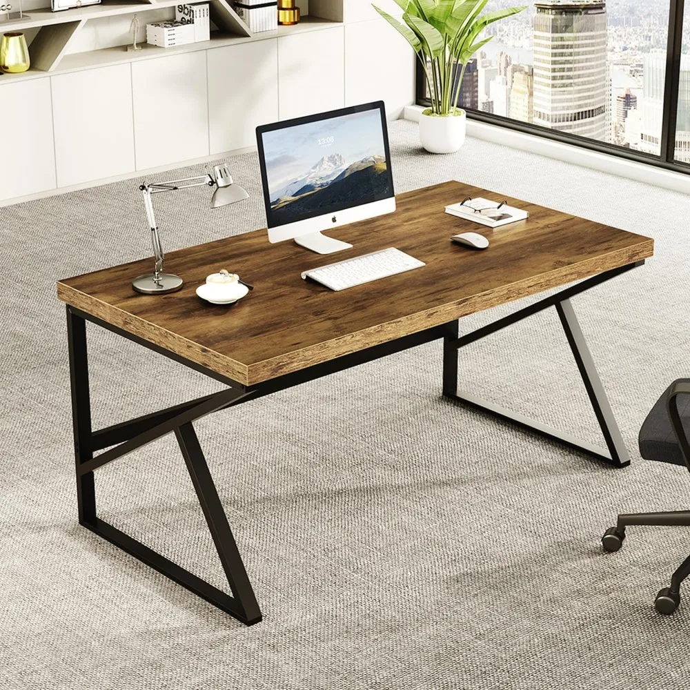 - 【Sturdy and Durable】: This rustic desk are designed with 1.57'' thick tabletop and heavy duty K-shaped metal legs, which can easily hold up 300 lbs weight capacity. This rustic computer desk can be served as laptop desk, pc desk, work desk, writing desk, study desk, gaming desk, student desk and workstation.