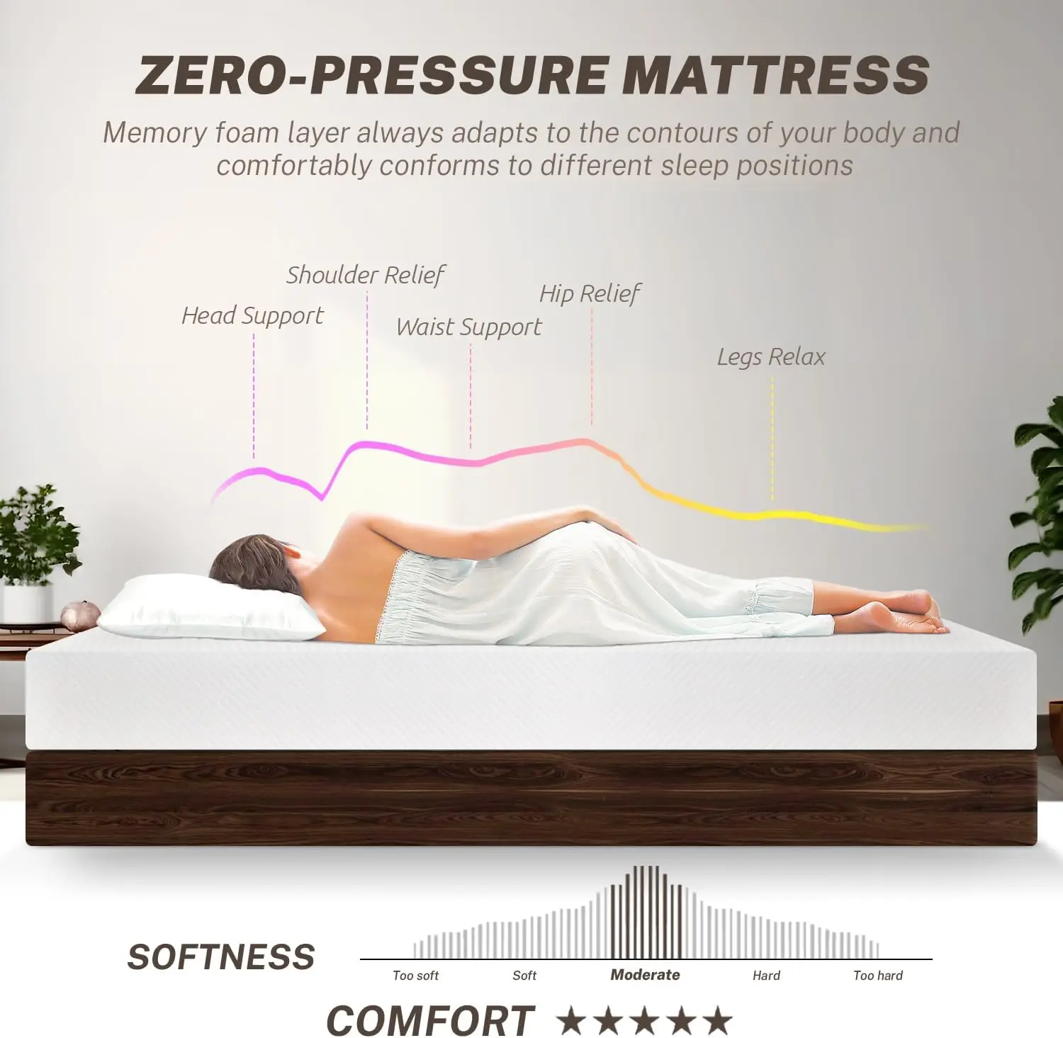 Full Size 8 Inch Gel Memory Foam Mattress Medium-Firm Mattress for Pressure Relief & Cooler Sleep, Mattress